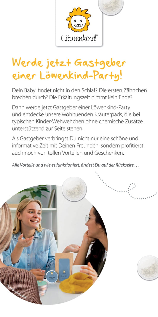 Flyer "Werde jetzt Gastgeber einer Löwenkind-Party!"