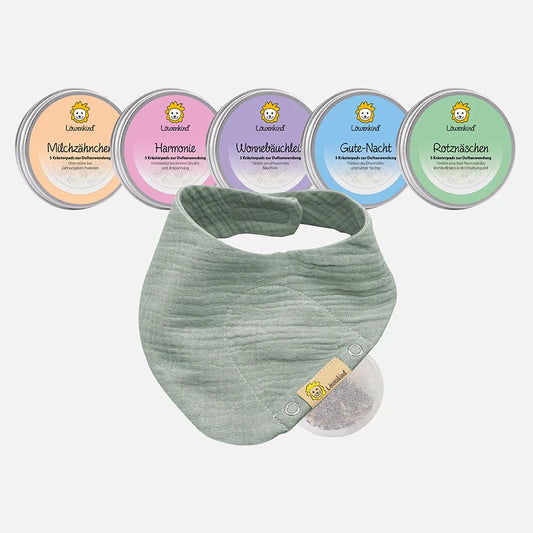 Normaler Preis €47,32Normaler PreisGrundpreis pro€59,90Verkaufspreis €47,32Enthält 2 Musselin-Tücher und 3 Kräuterpad Dosen: Gute-Nacht, Rotznäschen und Wonnebäuchlein.